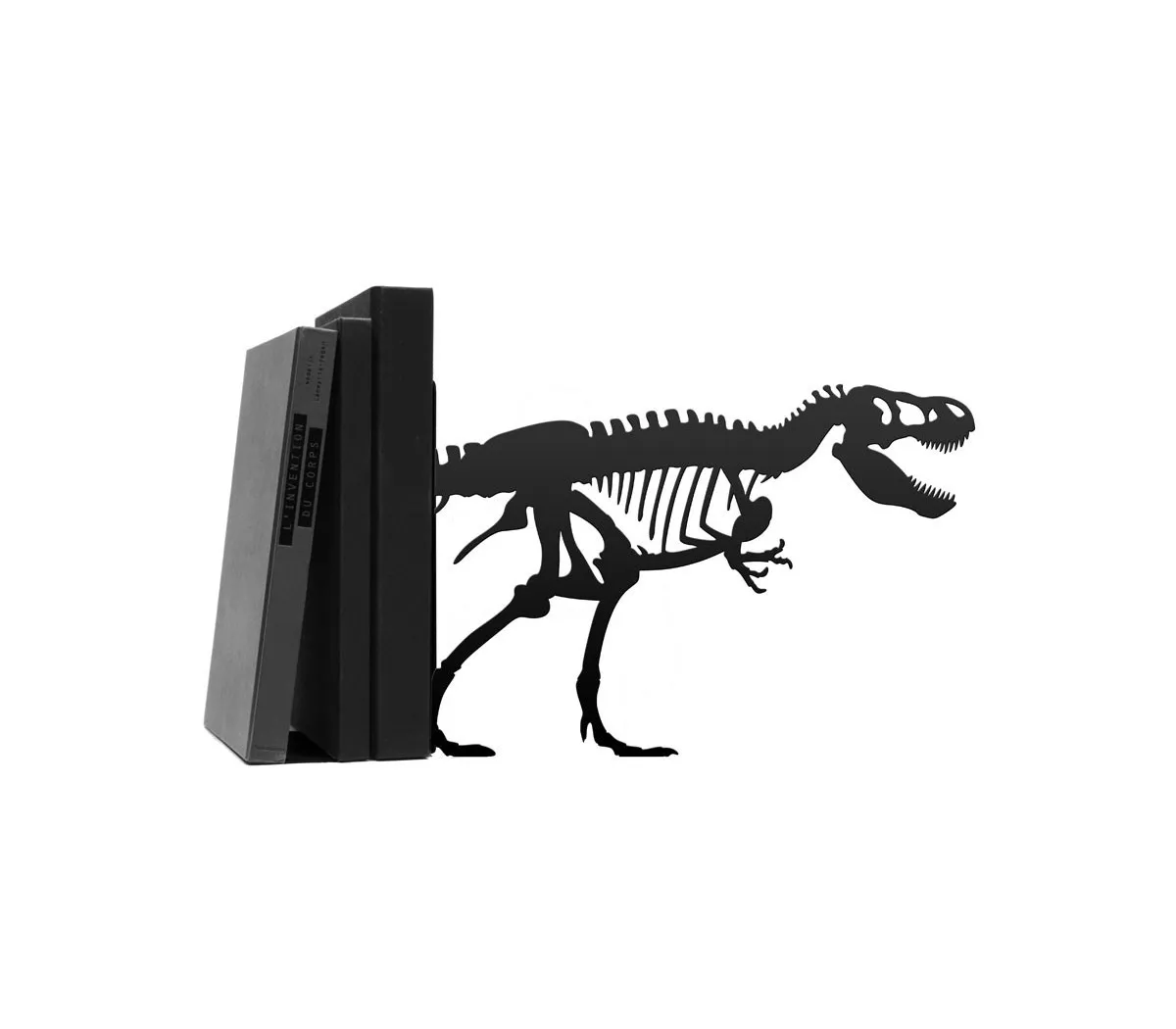 Wie viele von uns wurde auch Yvon Luneau, der Namensgeber der Marke, in seiner Kindheit von Dinosauriern geprägt. Als er älter war, ging er gerne in die Grande Galerie de l'Anatomie im Jardin des Plantes in Paris, um dort die riesigen Skelette dieser ausgestorbenen Tiere zu bewundern. Da das Laserschneiden große Gestaltungsmöglichkeiten bietet, beschließt er, sich selbst eine Freude zu machen, fast wie eine Laune eines Kindes: Er zeichnet ein T-Rex-Skelett, um daraus eine großformatige Buchstütze zu machen.