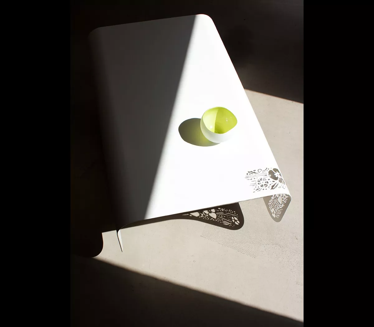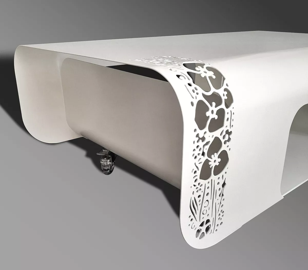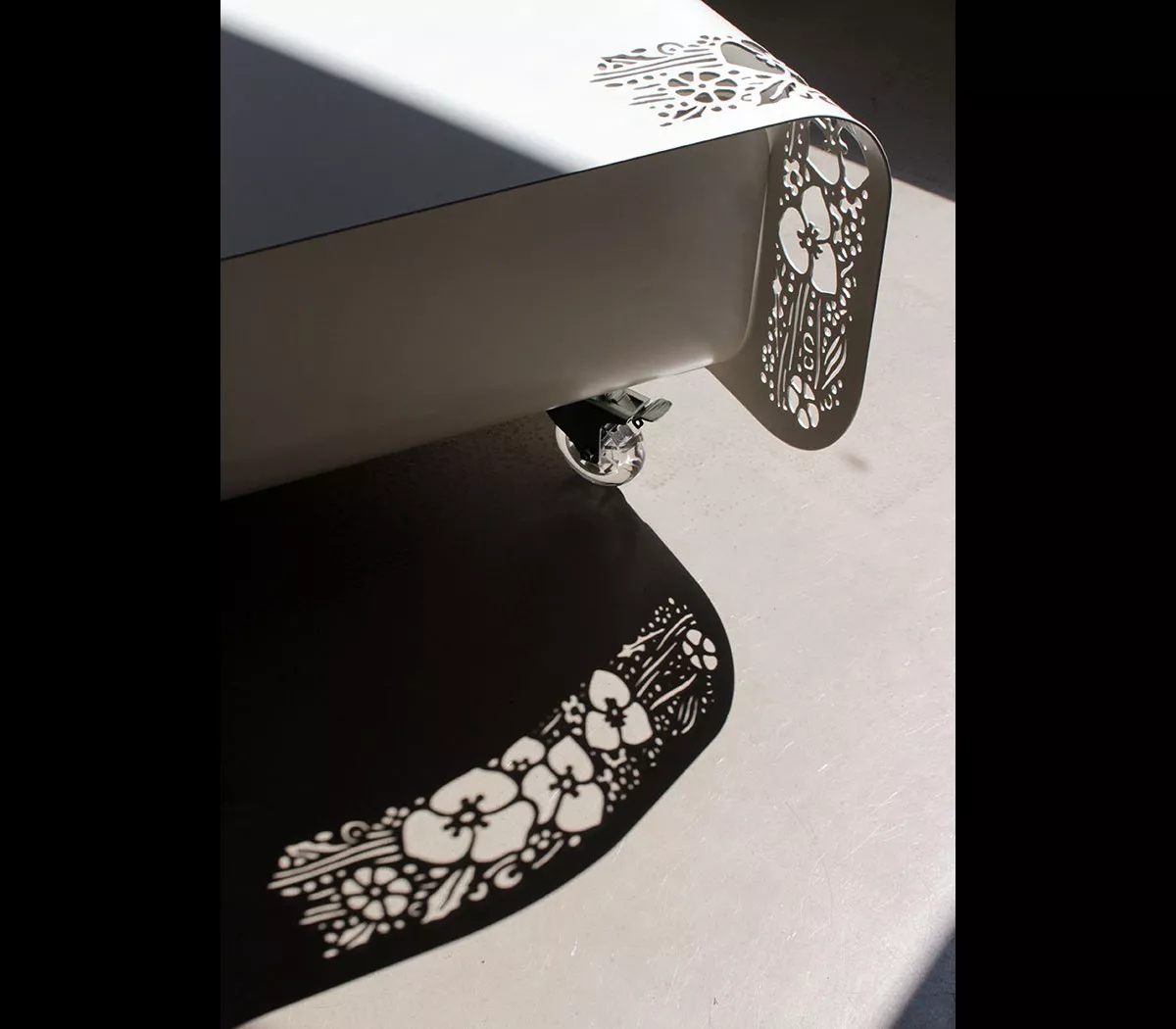 A floral pattern has been added to the white model in the photo. It has been cut out just on one corner to avoid any impression of symmetry and monotony.